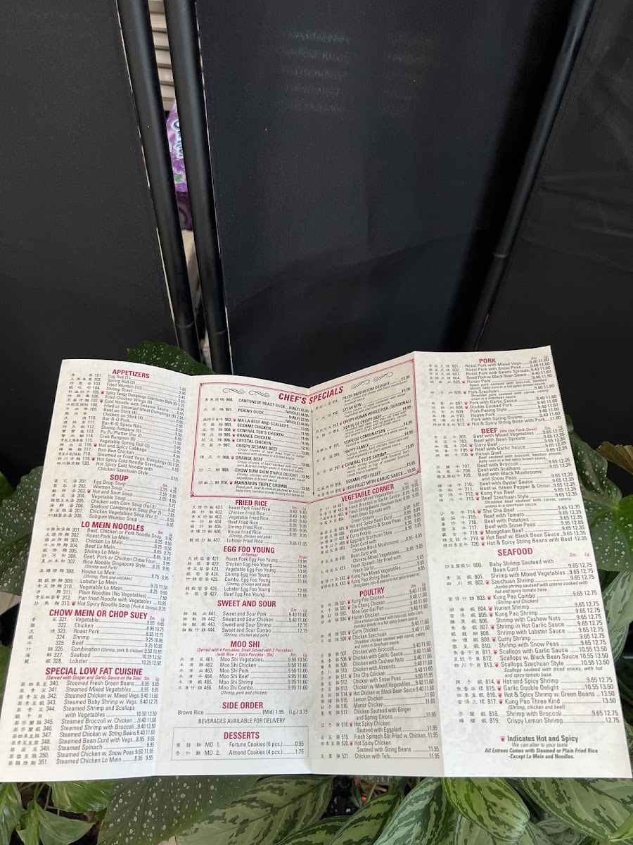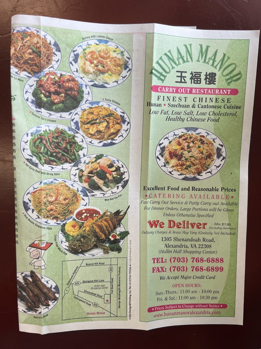 Hunan Manor Menu
